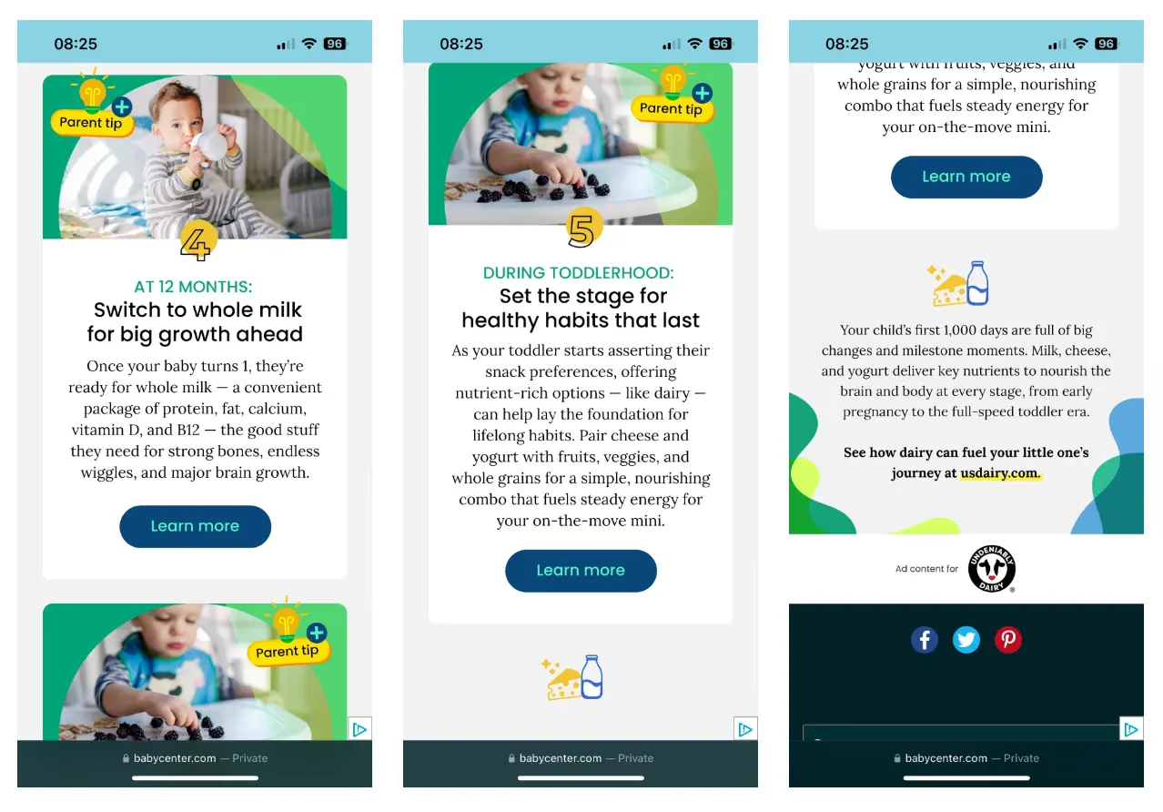 A cornerstone of this activation is partnerships with BabyCenter and What to Expect, two of the most widely-used parenting platforms in the U.S. The partnerships include dairy-focused articles, social media content, in-app promotions and expert video content.